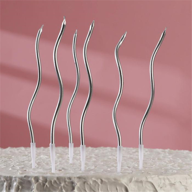 Свечи для торта "Серпантин" 6 шт, коктейльные, серебро, 15,5 см