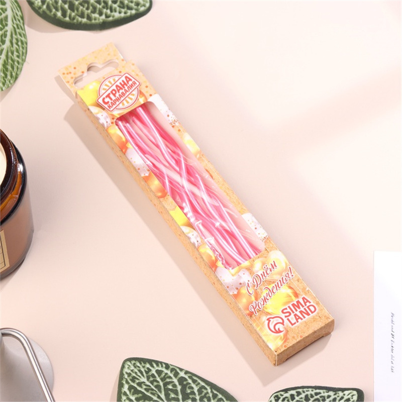 Свечи для торта "Серпантин" 6 шт, розовые, 15,5 см