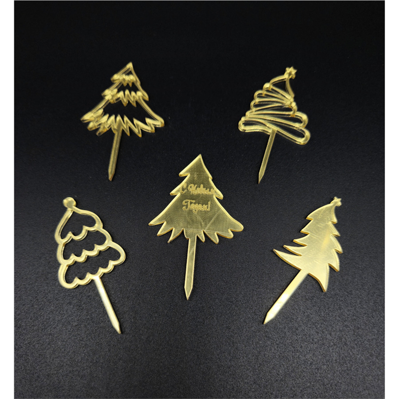 Мини-топпер " Ёлочки золотые на ножке" в ассортименте, 4 см, зерк.акрил