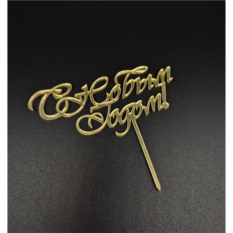 Топпер "С Новым Годом 5"на ножке,золото, 10 см, зерк.акрил